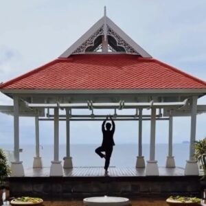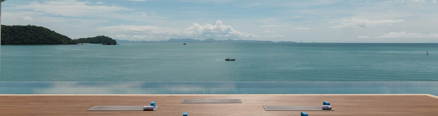 Enjoy Flow, Slow Flow, and Yin + Restore yoga. Suitable for all levels. All props + mats provided. The resort studio offers breathtaking panoramic views over the turquoise waters of the Andaman Sea.